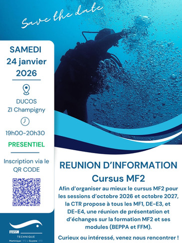 Pour débuter l'année 2026, la CTR Martinique-Guyane propose deux réunions, dès le mois de janvier, afin de vous informer sur le cursus MF2 animée par Fabien PABIOT (IN).